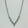 Le Headband est constitué d'une chaîne en laiton bronze, de deux éléments navettes en verre brun/framboise et d'un élastique en dentelle noire pour faciliter la pose. Création française